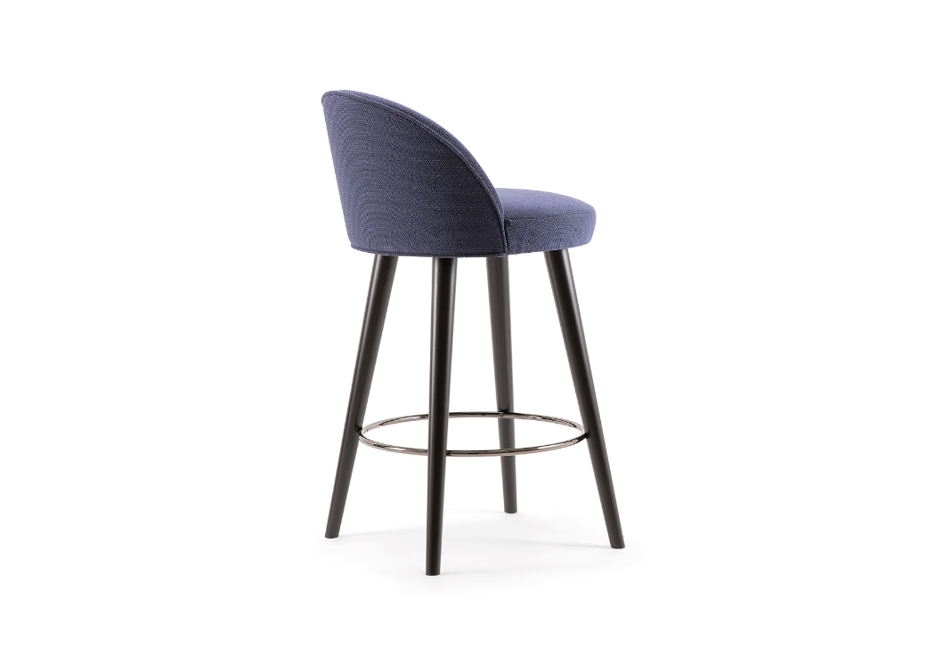 Lo sgabello Ginger ha un sedile perfettamente arrotondato circondato da unoschienale caratterizzato da una morbida curva. Le gambe in legno massellopoggiano delicatamente attorno all'anello metallico, fornendo supportostrutturale e comfort. ll rivestimento dello sgabello, cosi come la tinta dellegno, possono essere scelti tra una vasta gamma, per personalizzare questoprodotto secondo ogni esigenza.
