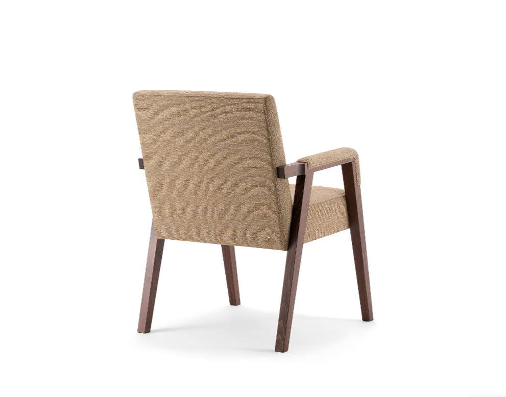 Seduta sorprendentemente accogliente, che riporta agli anni'70 in termini diforme e tessuti ma con un tocco di modernita. Poltroncina versatile efunzionale, realizzata in faggio, ottimale per arredi contract e navale.