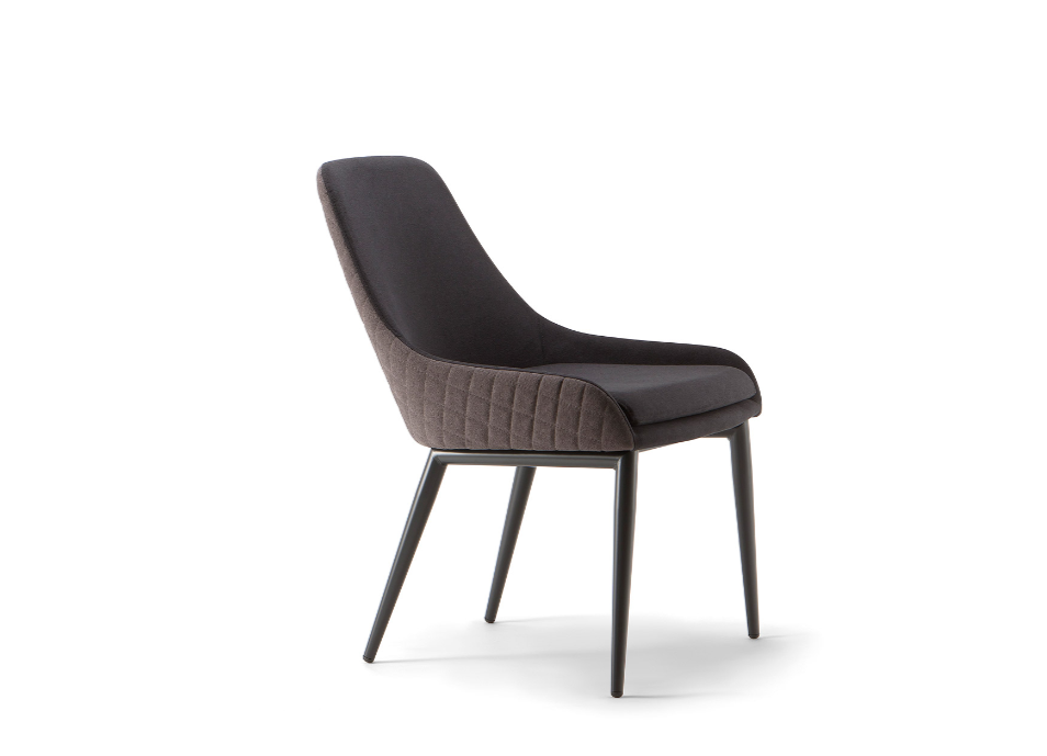 La sedia Jo è la regina di questa sofisticata collezione.