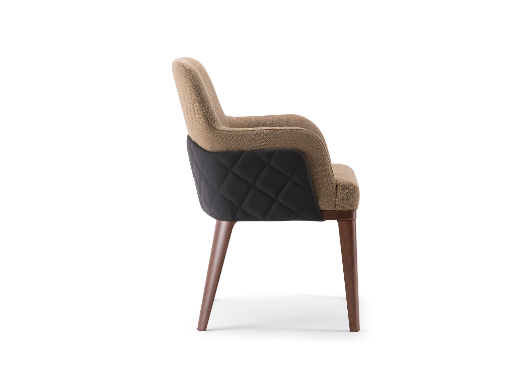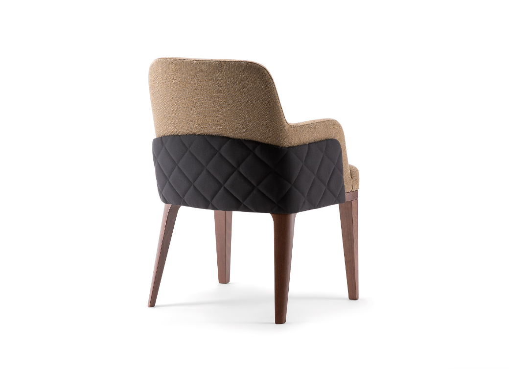Con imbottitura trapuntata sullo schienale, un pannello imbottito sul retro euna comoda seduta, la poltroncina Gill perfetta per lounge e ristoranti diclasse. I robusti braccioli, inclinati delicatamente verso l'alto e le gambe inegno massello completano questa seduta. Una vasta gamma di tessuti e tinteegno sono disponibili per personalizzare a meglio questo elegante prodotto.