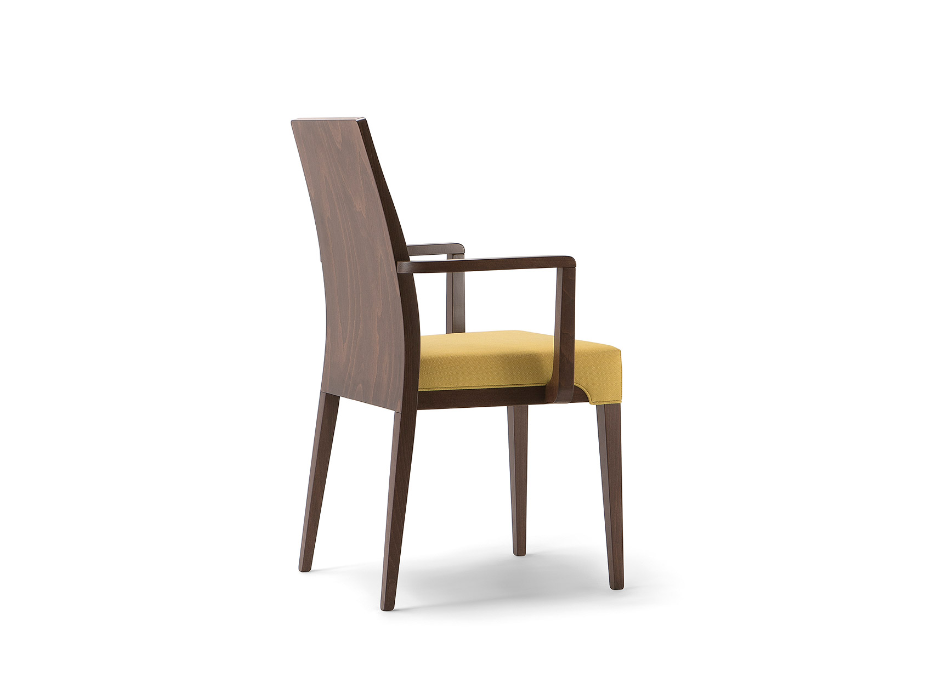 La poltrona con braccioli in legno offre un comodo sedile imbottito per