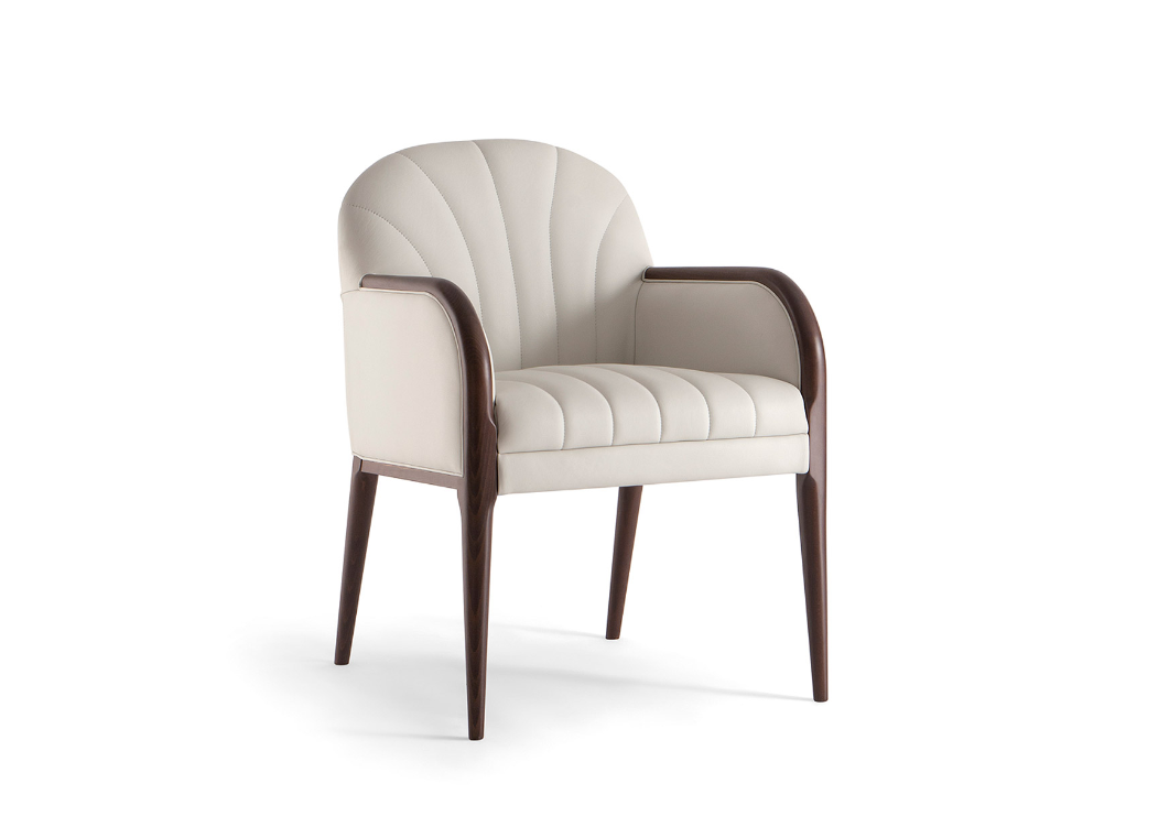 Elegante e raffinata struttura in legno massello, rivestita da una morbidaimbottitura che regala comfort e relax ad ogni seduta. Limbottitura concuciture a vista lelemento caratterizzante di questo progetto, tuttodedicato agli ambienti di relax.