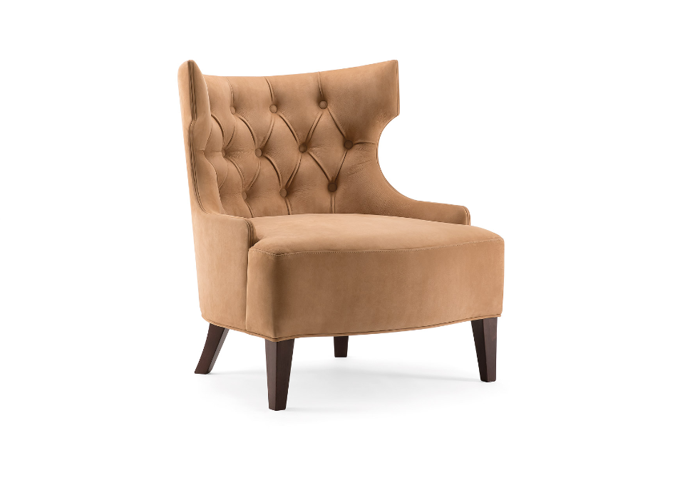 Questa elegante poltrona viene proposta nelle due versioni con capitonnéo