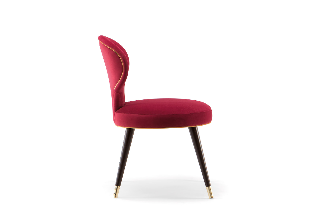 Lo schienale, simbolo distintivo di questa collezione, forma una silhouetteglamour nella poltrona Elle. Sorretto da quattro gambe coniche in legnomassello, rifinite con eleganti piedini in metallo, Elle la poltrona perfettaper appartamenti di lusso, hotel e bar alla moda.La possibilita di rifinirla scegliendo tra una vasta gamma di tessuti e tinteegno,la rende una sedia versatile e moderna.