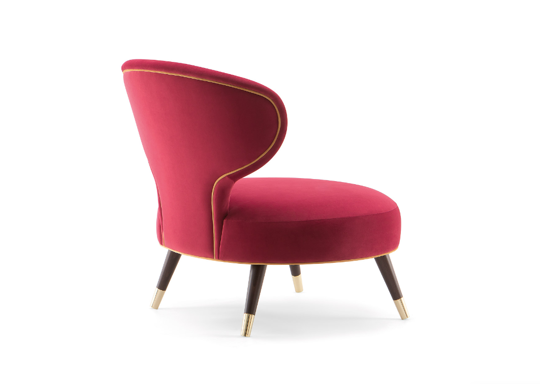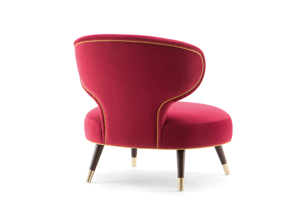 ldeale per le lounge dei boutique hotel e per i pit esclusivi cocktail bar, lapoltrona Elle crea comfort e stile.Lo schienale si curva poeticamente verso il sedile arrotondato ed arricchitoda una piacevole imbottitura. Quattro robuste gambe in legno massello,dotate di piedini in metallo, sorreggono questa elegante poltrona.
