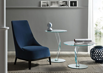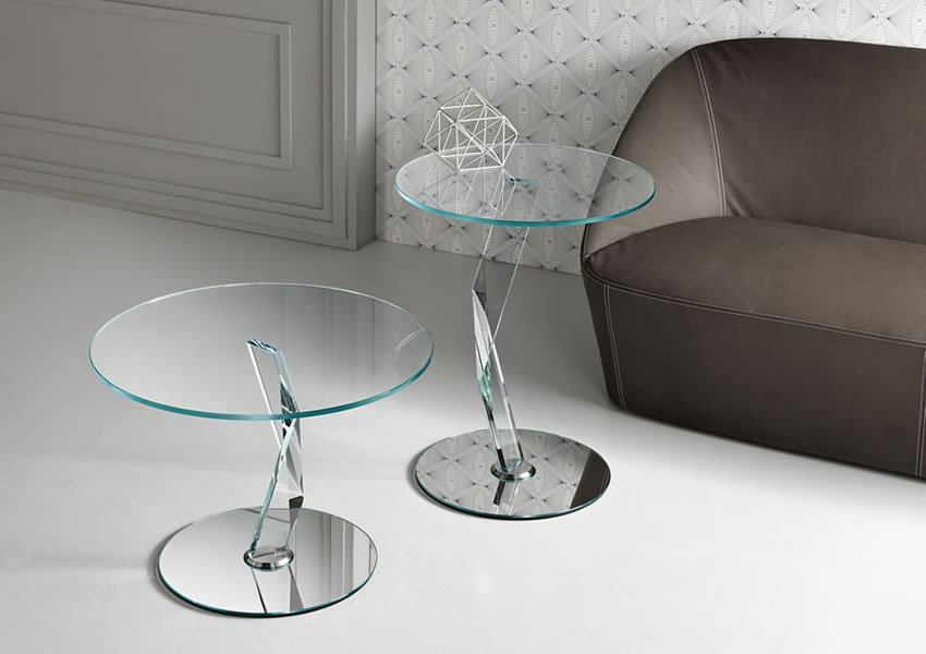 Multipurpose table, leg in thick glass with diamond grindings. Available in two heights, only extra clear glass.