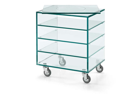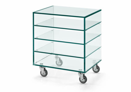 Unit with various shelves available in 2 different widths. Also available with revolving TV shelf. Drawer finishing of Grattacielo fix cm 58 see page 409.