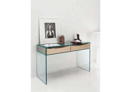 This unit is also available with frosted glass top and transparent under shelf. Drawer finishing see page 409.