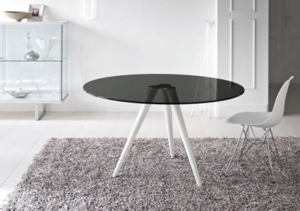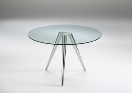 High table solid and elegant at the same time. Available with white lacquered or chromed base, top in transparent, smoked or extraclear glass.