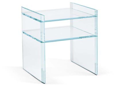 Side table. This unit may be complemented with a tray in solid walnut canaletto wood or mat white MDF.