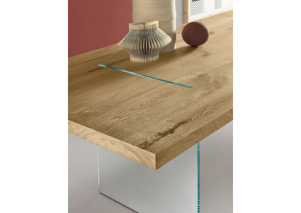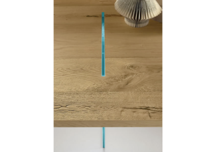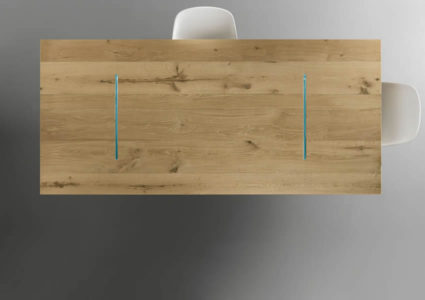 The tabletop is made with recovered oak beams processed to enhance the wood’s distinctive cracks and knots. An industrial process that promotes the recovery and redevelopment of top-quality raw materials.