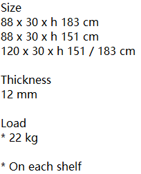 Wall-mounted modular bookcase with five or six shelves, in two widths and metal supports