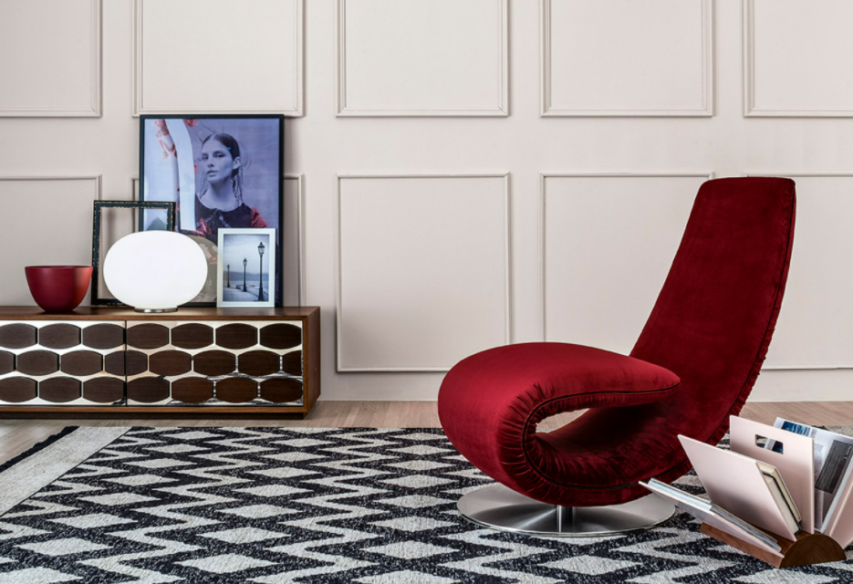 Ricciolo è una poltrona, una chaise-longue, un articolo per rendere qualunque stanza unica. Dotata di un meccanismo pieghevole brevettato, è disponibile in diversi rivestimenti, quali pelle, eco-pelle, pelle fiore e tessuto elastico orchidea.