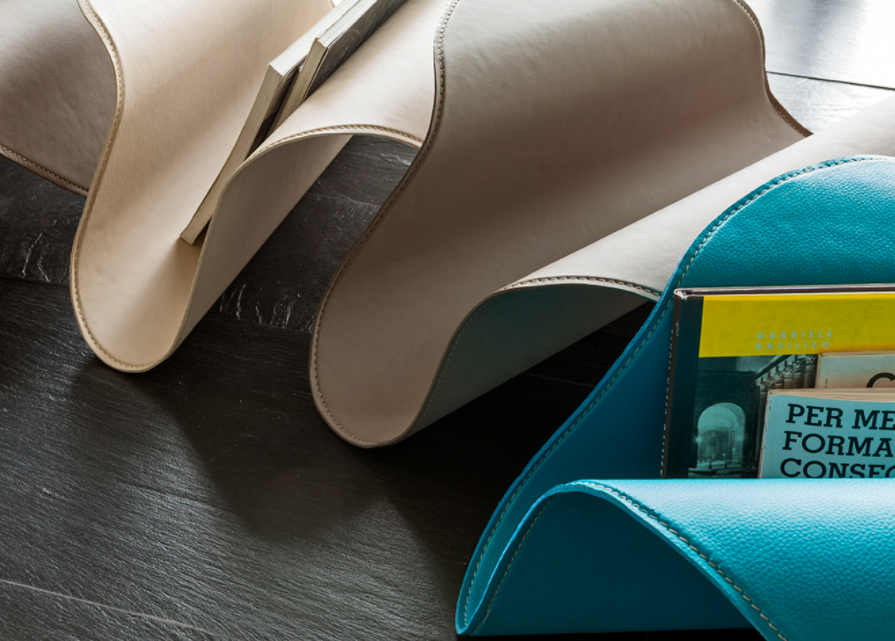 Pratico, elegante, e dalla linea morbida: Fly è un portariviste che si arricchisce di un rivestimento in eco-pelle, e che permette moltissime variazioni di colore.