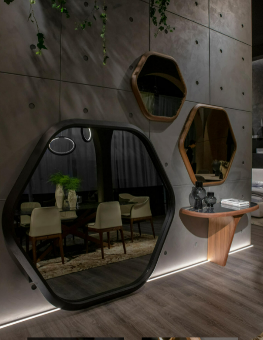 Angelo Tomaiuolo firma anche gli specchi Hive, dove la Musa ispiratrice è la natura: Hive richiama nel suo nome e nella sua forma le geometrie dell’alveare.