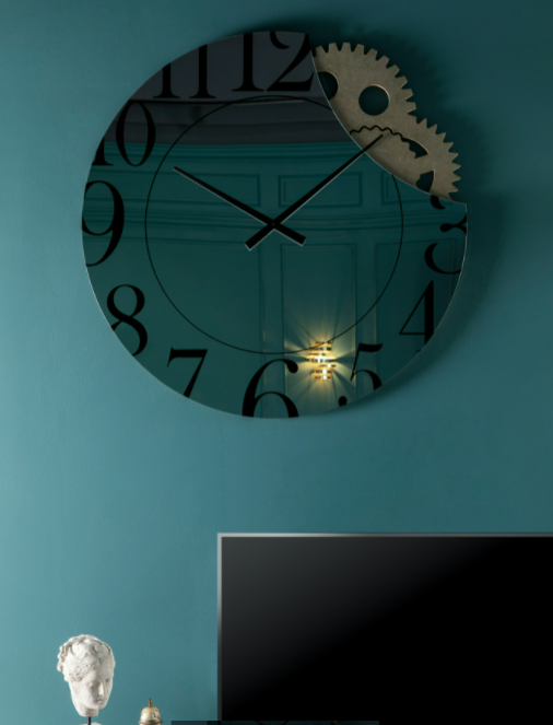 Gli ingranaggi del tempo si svelano nell’orologio/specchio Memphis,