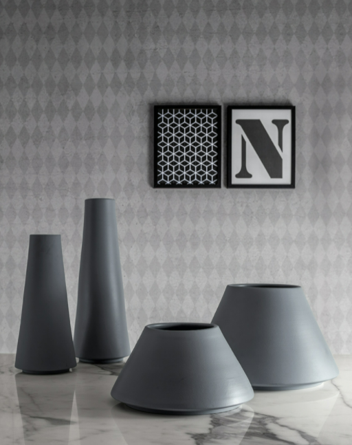 Vulcano: un gruppo di vasi che si ispira a forme montuose, e si divide tra il vaso Fumo, snello come un camino, e il vaso Lava, ampio e capiente.