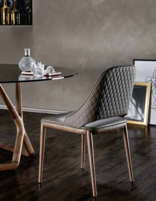 Una seduta esile ed estremamente elegante che acquisisce ulteriore valore grazie all’aggiunta della nuova trapuntatura a rombi apportata nello schienale. Sceglila con la finitura che più ti si addice.