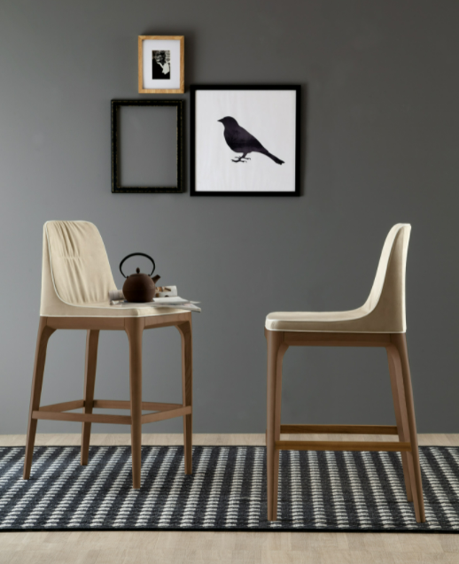 Mivida diventa uno splendido ed elegante sgabello, con base in legno tinto noce, rovere scuro, o rovere naturale, e una seduta rivestita in pelle ed eco-pelle. L’eleganza di Mivida aumenta ulteriormente, grazie alla froma leggera e slanciata della struttura.