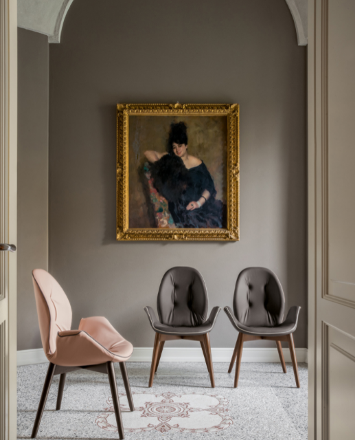 Sorrento nasce per accontentare due diverse preferenze: è una sedia con braccioli, per chi la desidera maggiormente strutturata; sia una sedia senza braccioli, aperta e leggera. La struttura è in frassino tinto rovere o noce, e può essere rivestita di pelle, eco-pelle, pelle fiore o pelle nabuk. La cordonatura raffinata può essere personalizzata con diverse colorazioni.