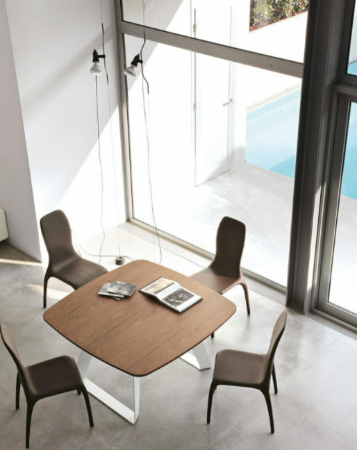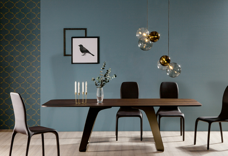 Brenta parte dall'idea di una base che sia in grado di accordarsi a differenti ambienti: il metallo curvato si tinge di bianco, bronzo pietra o grigio carbone, abbinandosi perfettamente ad ogni stanza. Brenta premia la naturalezza del legno, la tenacità del vetro e il lusso del porcellanato.