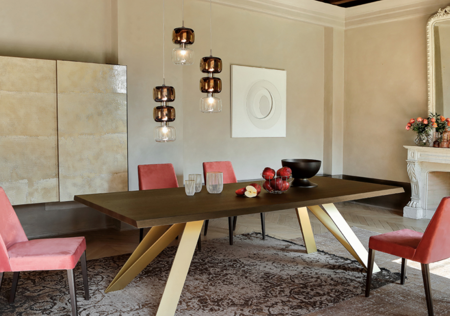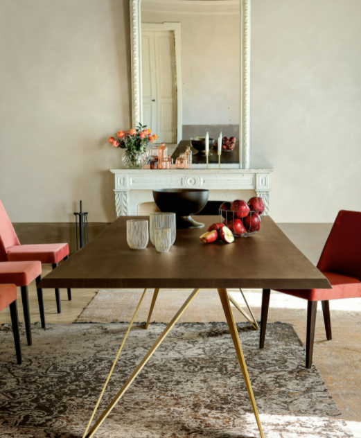 Una rete metallica con angoli precisi e diretti, che puntano rapidi ai ripiani in legno massello di noce o rovere, o ancora in rivestito legno con particolari in massello. La qualità e il valore tecnologico del metallo si tingono di bianco opaco, oro opaco, grigio carbone o rosa agata, creando impatti di luce e toni adattabili ai gusti più raffinati.