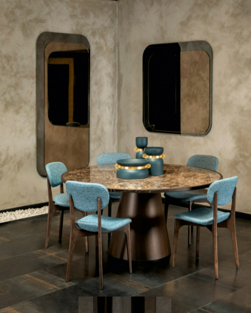 La pienezza scultorea della base in legno termocurvato esalta la perfezione formale del piano porcellanato, incorniciato dalla finitura lignea che enfatizza ancor di più la magnificenza di Prime.