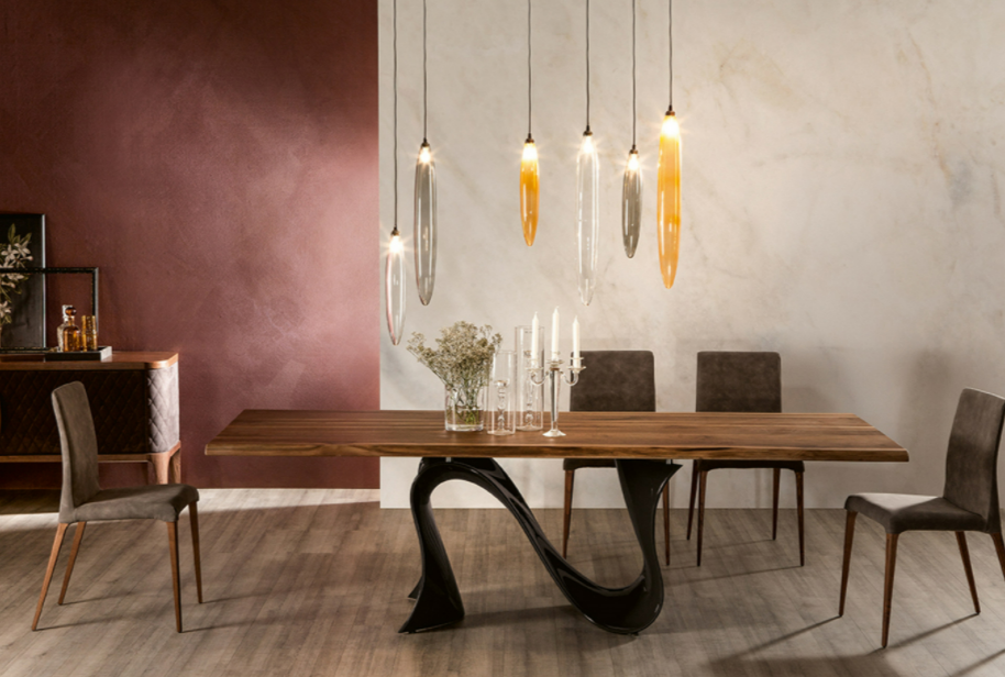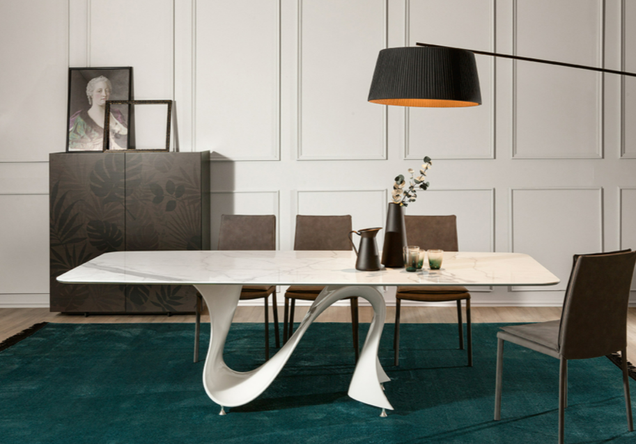 Wave è il risultato di una lunga serie di studi e pensieri su diverse tecniche di lavorazione e materiali innovativi. L'utilizzo del Baydur ha permesso che la base andasse ad imitare perfettamente la forza ed il movimento di un onda; inversamente, il piano viene sostenuto da quell'onda, placandola e ridefinendola: trasformandola da puro movimento a stasi.