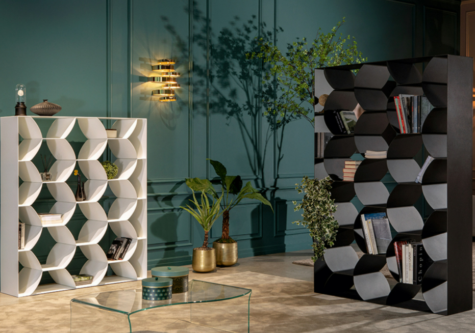 Una libreria dall’identità precisa che riprende l’elemento alveolare della madia Honey. Honeybook è una libreria monomaterica, in acciaio verniciato, originale, funzionale, pratica e adatta a qualsiasi ambiente e gusto. Disponibile in varie misure e interpretabile anche come divisorio di più ambienti.