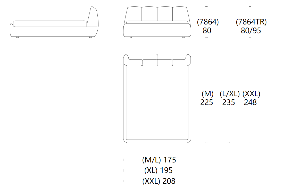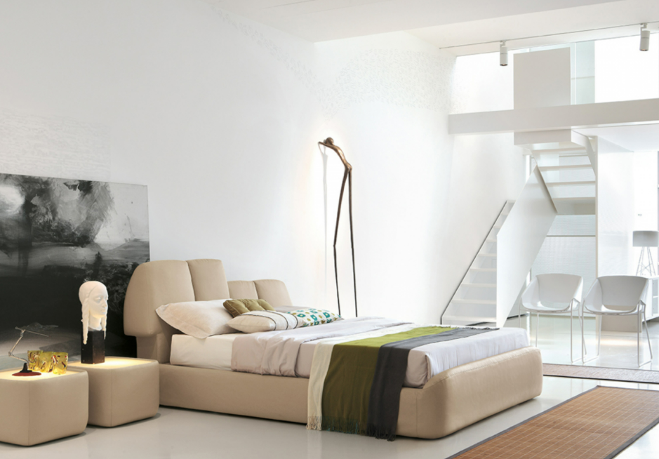 Un letto pensato per combinare forza, pulizia e armonia: la testiera, suddivisa in quattro diverse sezioni, concede una geometria unica e irripetibile a questo letto rivestito in pelle, eco-pelle, o tessuto con trattamento antimacchia e idrorepellente.