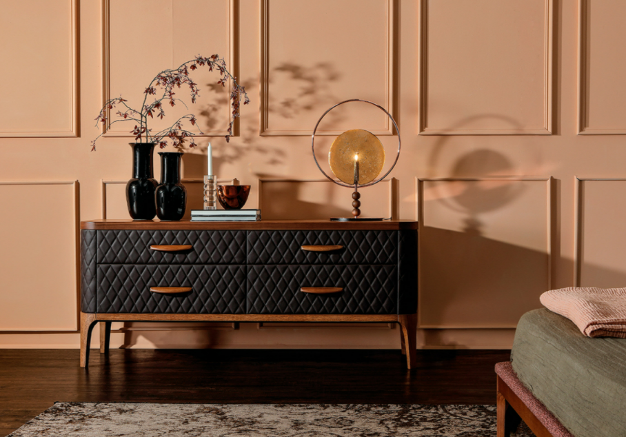 struttura in legno e trapuntatura a rombi, perfetta accoppiata
