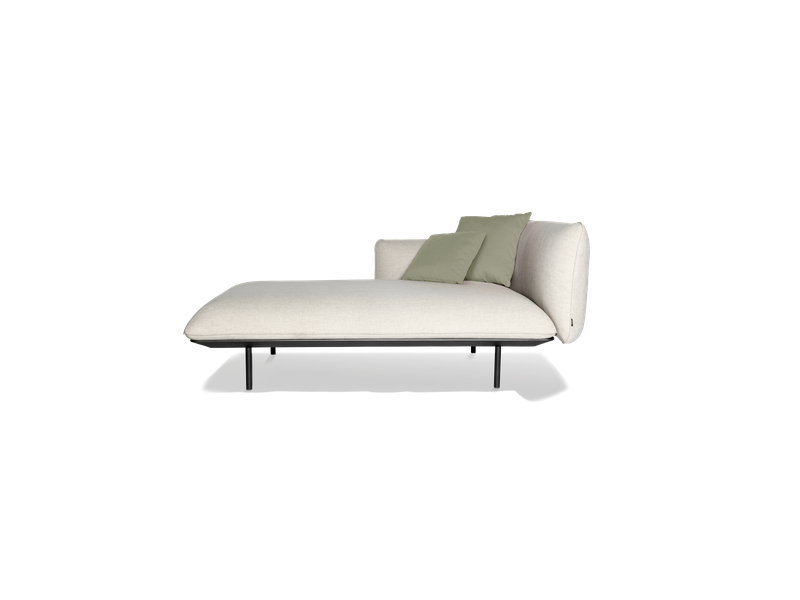 Curl up and relax on the Senja meridienne for comfortable and luxurious lounging, personalised to your own unique taste thanks to various choices of frame and leg colours and over 100 nature-inspired outdoor fabrics. You can even attach an elegant side table to the frame, keeping everything you need at hand. The Nordic-style cushions are finished with a piped seam and can easily withstand a sudden downpour, thanks to the ventilating, water-repellent filling. The seams of the filling are protected with an extra inside cover and the thread used to stitch the seams swells when wet, further preventing water from entering.