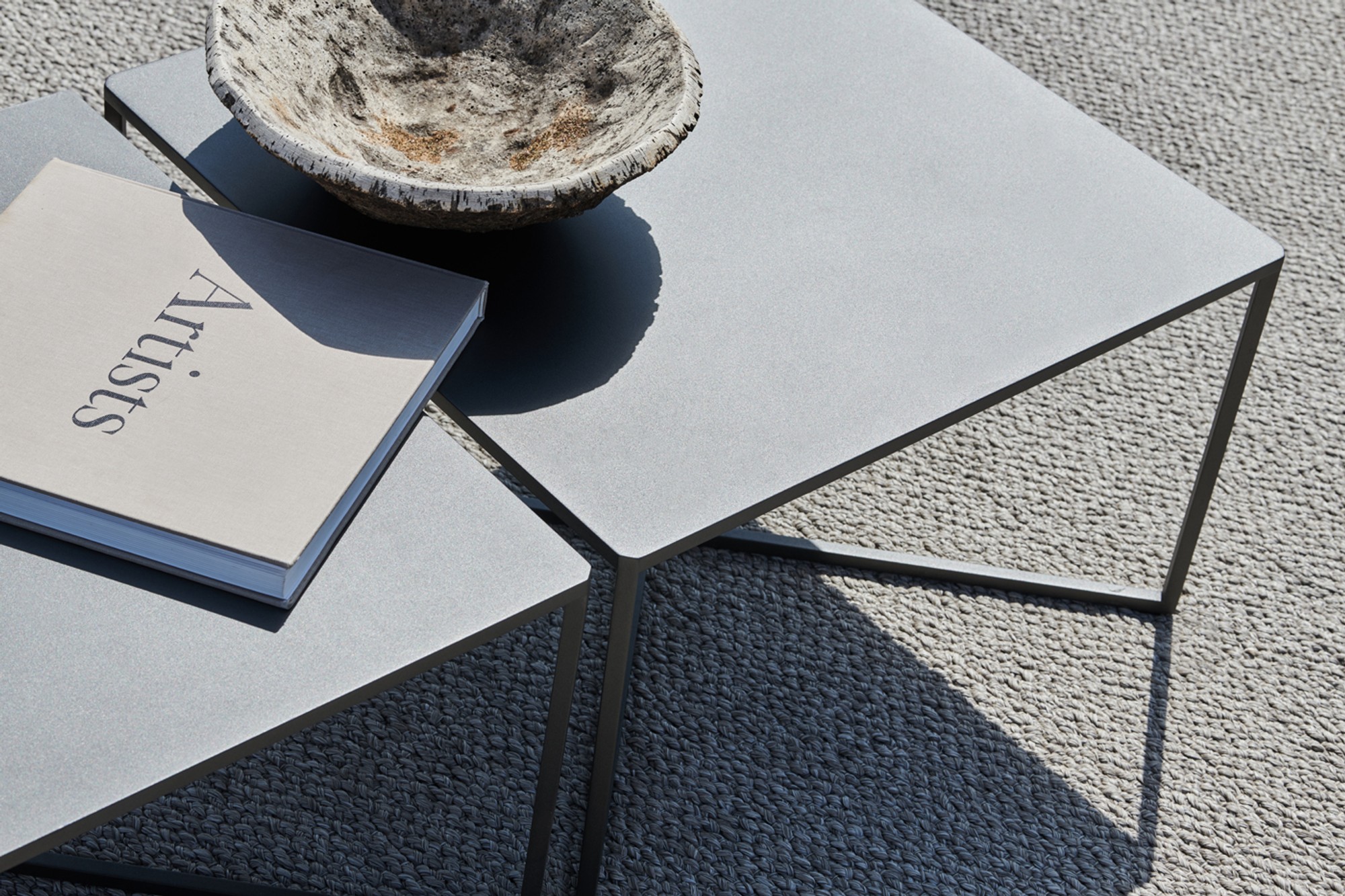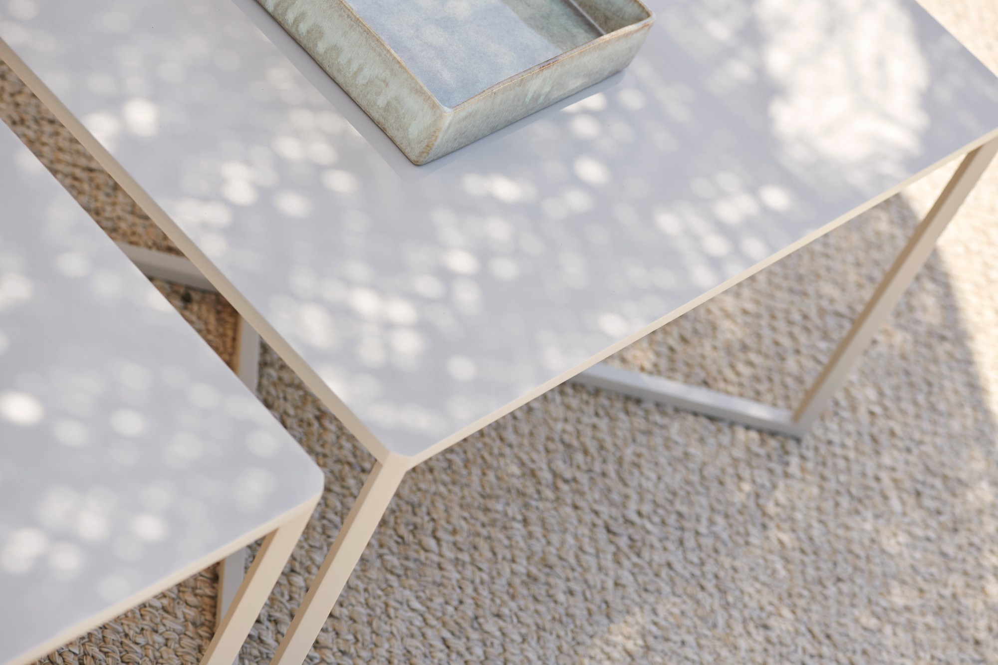 The Natal Alu X side tables in matte powder coated aluminium combine functionality with a subtle, contemporary design. The fine lines of the crossed frame and the edged angles are eye-catching touches, typical of Tribù's attention to detail. These multi-purpose side tables are available in different shapes and heights and in various nature-inspired colours, meaning the Natal Alu X will complement any outdoor setting.