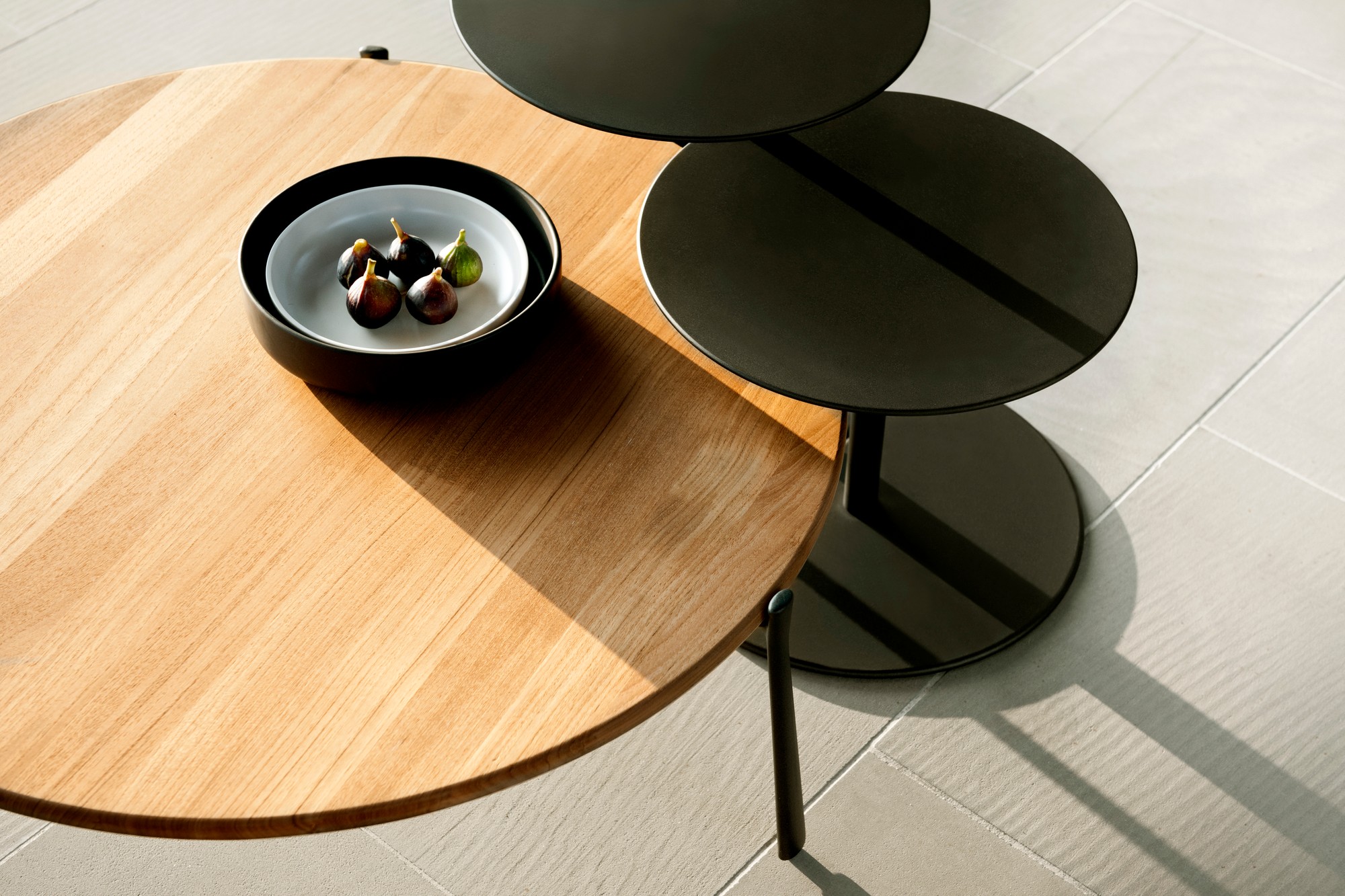 Drops side tables are inspired by the concentric circles formed by falling raindrops. They come in a selection of three different heights and two diameters, 40cm and 60cm. The bases have a crescent shape cut out of them, which makes grouping these versatile tables a visual game. Drops side tables, designed by Verónica Martínez, are are easy to move and cluster together. Made of powdercoated aluminium, they are available in white, aluminium, wengé and burgundy.