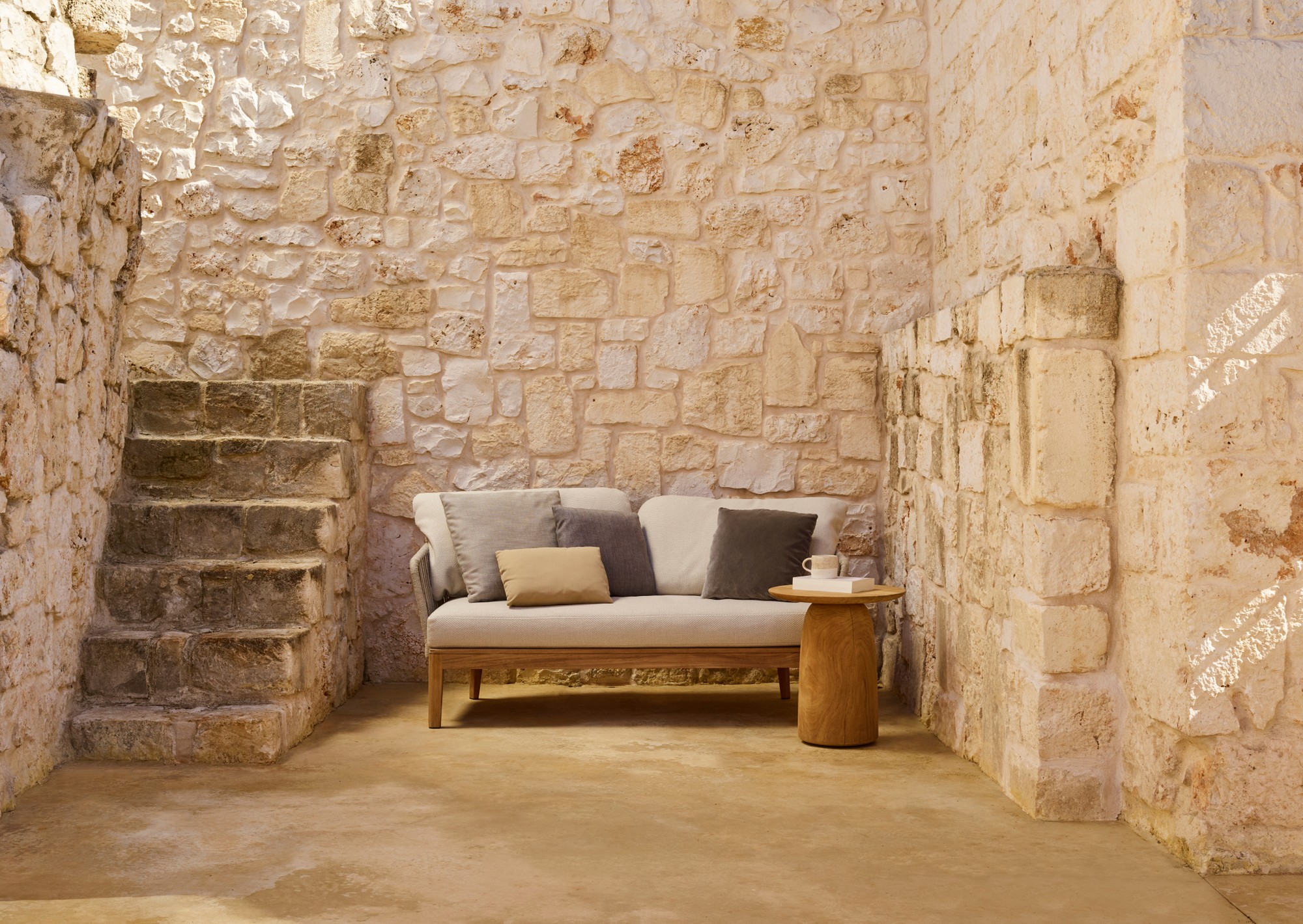 A simple, gently domed and sculptural base and smooth circular top are all that comprise the timeless Dunes side table.Solid plantation teak adds a warm, natural quality to this practical and beautiful little table, which fits easily into its outdoor setting.