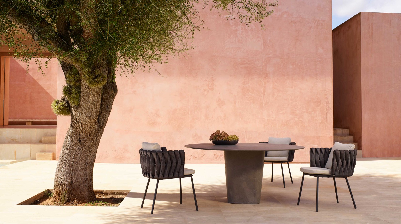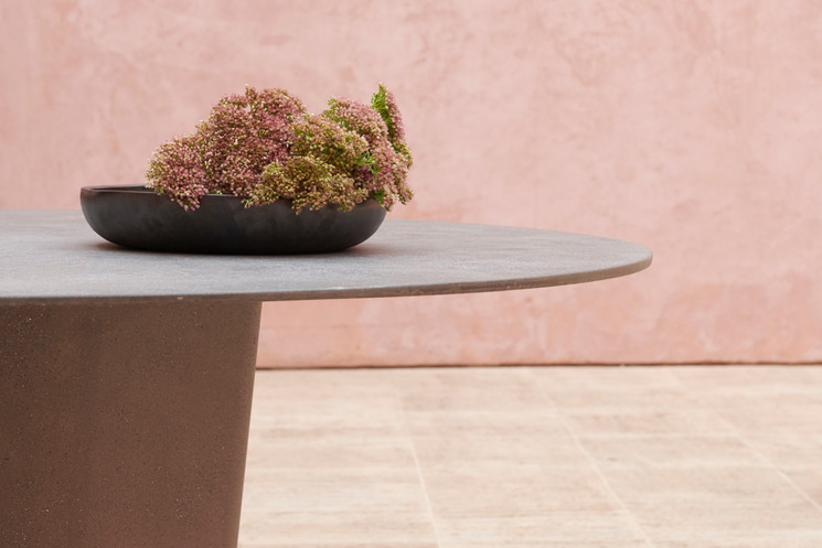 The elegant Tao table collection is a lesson in perfectly balanced contrasts – bold sculptural pedestals are combined with slim table tops that are pleasing to the touch. Designer Monica Armani has used refined lightened concrete, finished by hand to create a look of elegant solidity. The dining table has a central pedestal, which supports a finely milled round table top which comes in two diameters: 160 or 180 cm.