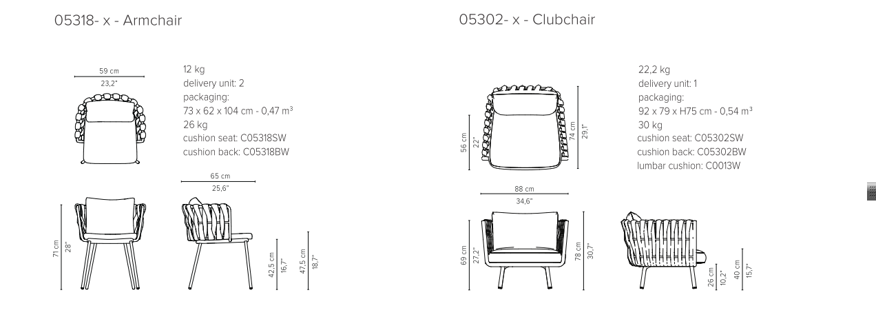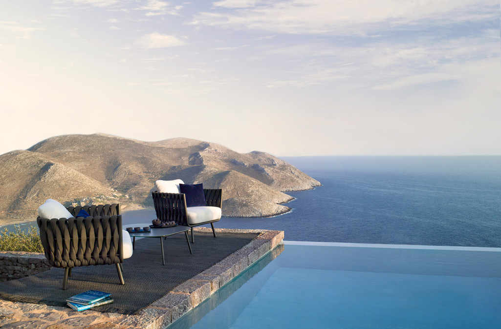 The Tosca outdoor collection is simultaneously warm and inviting, stylish and intriguing. It was the first time Tribù called upon a female designer to draw an outdoor furniture piece with a more feminine touch. Monica Armani succeeded in her challenge: rounded forms, tapered legs and an elegant seating shell in powdercoated stainless steel, upholstered with extra-wide braiding. The material for the braiding is genuinely innovative : foam mousse is encased in a seamless sheath of knitted textilene and polyolefine which makes the material weather-resistant, but also surprisingly soft to the touch. The seating comfort is especially pleasant, also thanks to the comfortable outdoor cushions.
