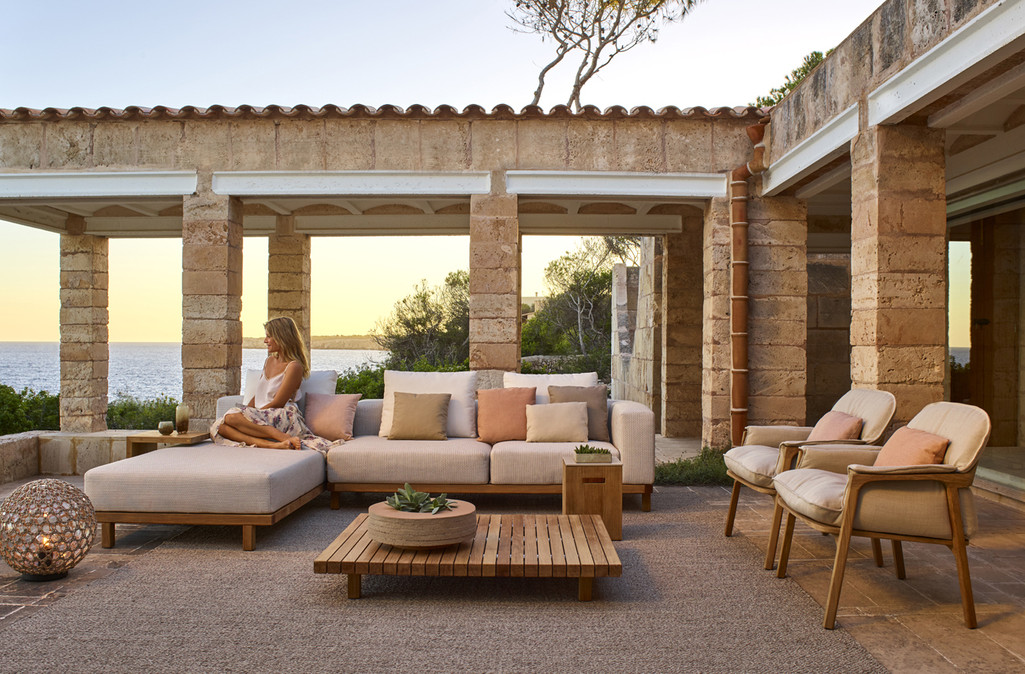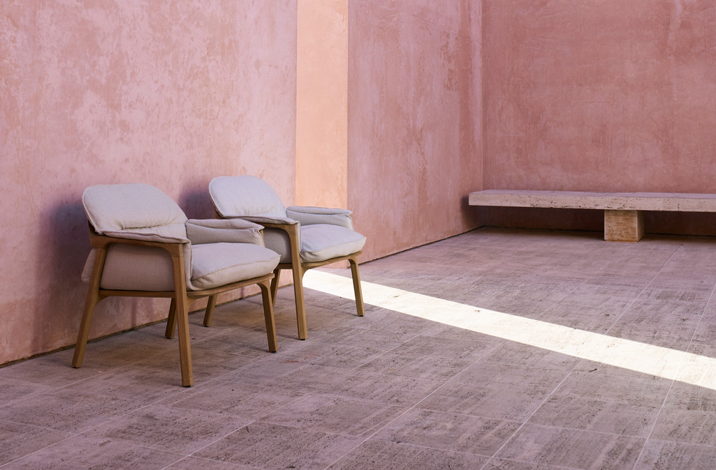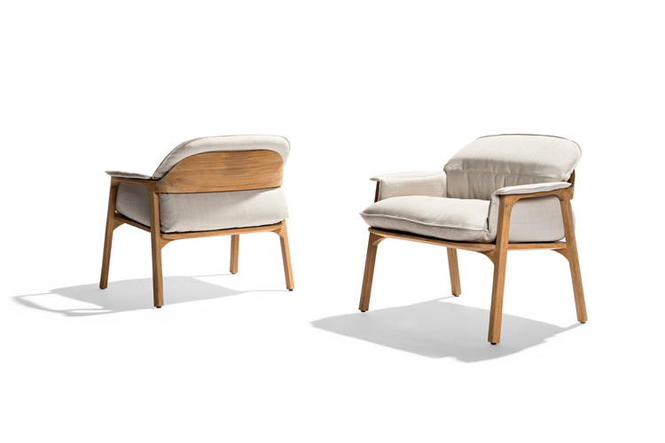 The deep cushion of the Nomad easy chair is stitched to cocoon the body, folding over the armrests and moulding into the broad curve of the backrest. Designer Monica Armani used what she calls ‘noble teak wood’ for its warmth, smoothness and strength. Slender legs and contoured armrests give the chair its elegant profile and the smartly stitched cushion is as luxurious as it is comfortable. Nomad, like its name, works well wherever it is placed, in combination with a lounge set-up or as a stand-alone piece.