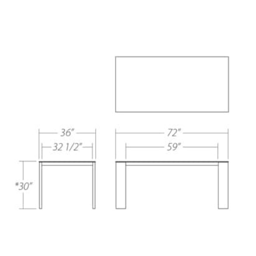 Solid wood legs: 1 1/2” x 6 1/4”.