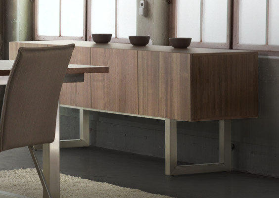 Wood veneer on particle board.