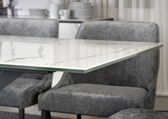 6 mm porcelain top laminated on a 12 mm thick glass.