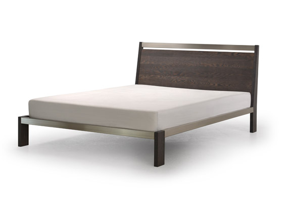 The bed is a combination of metal and solid red oak.