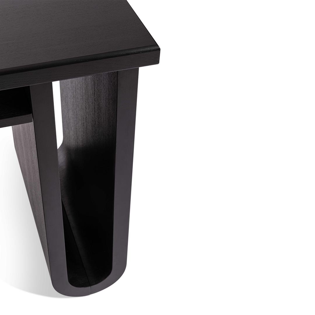 Papel is a sturdy and very light desk. It combines solid elements and cavities, minimal design and rounded shapes drawn from Roman architecture. Its handcrafted solid wood frame features soft, rounded edges. The desktop and the half-circle legs can be covered with leather to create unusual colour effects. Trussardi Casa introduces Papel as a workstation for home interiors.