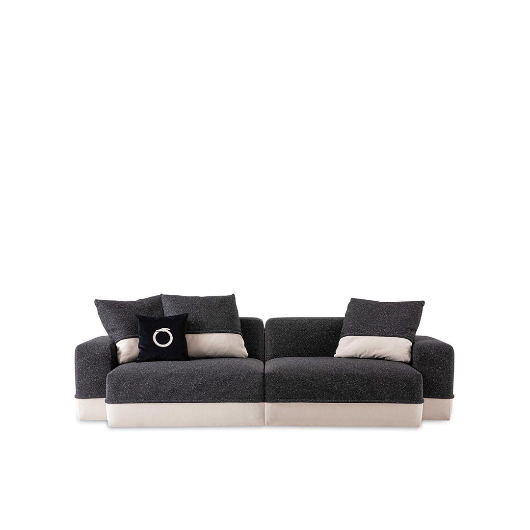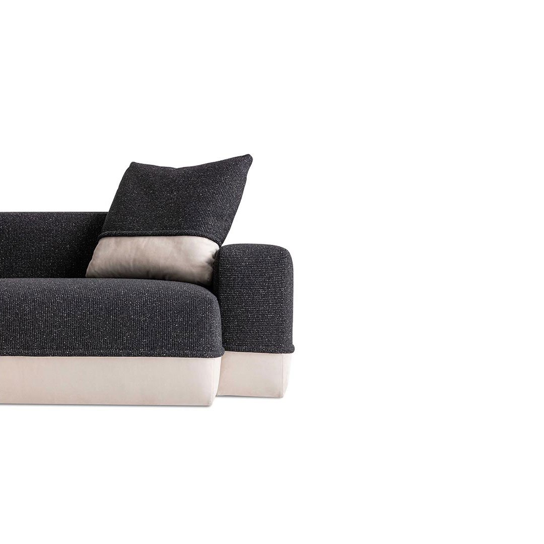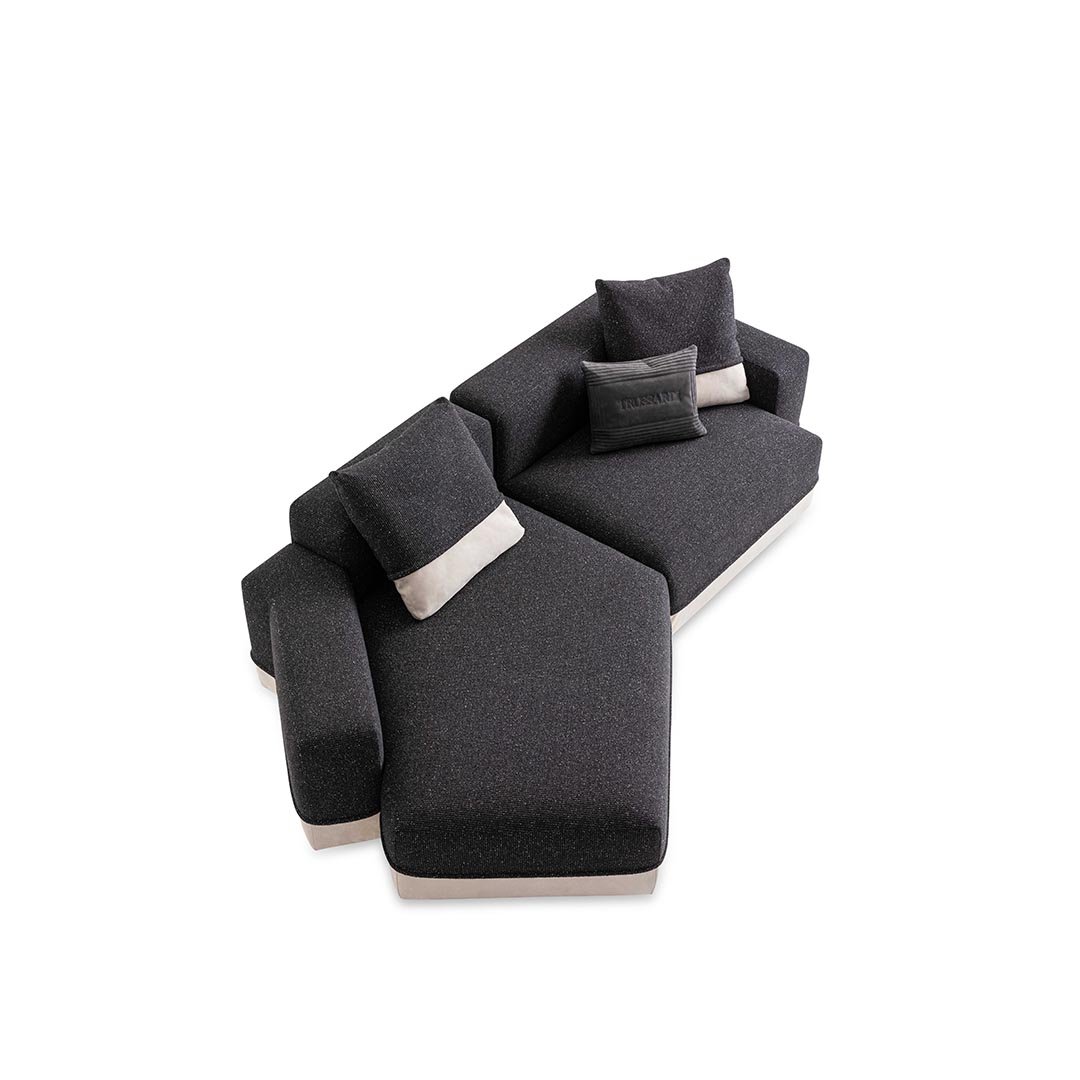 This highly versatile sofa pays tribute to geometry and promotes a sense of sophisticated comfort, by merging lightness and sturdiness. The seats and backrests are designed for a modern use of furniture, embracing comfort and relaxation as well as conviviality. Inspired by sartorial techniques in Trussardi’s fashion collections, the double stitched seams running along the perimeter and on the backrest cushions embellish Carlo Colombo’s inherently minimal style.