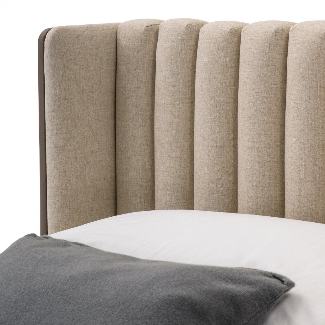 The Domus bed has contemporary proportions and light shapes. The design of the headboard, curved and enveloping, is characterized by original vertical seams that give it a unique appearance. The upholstery can be in leather, fabric or with both materials in combination. The Domus bed is available in different finishes as per sample card.