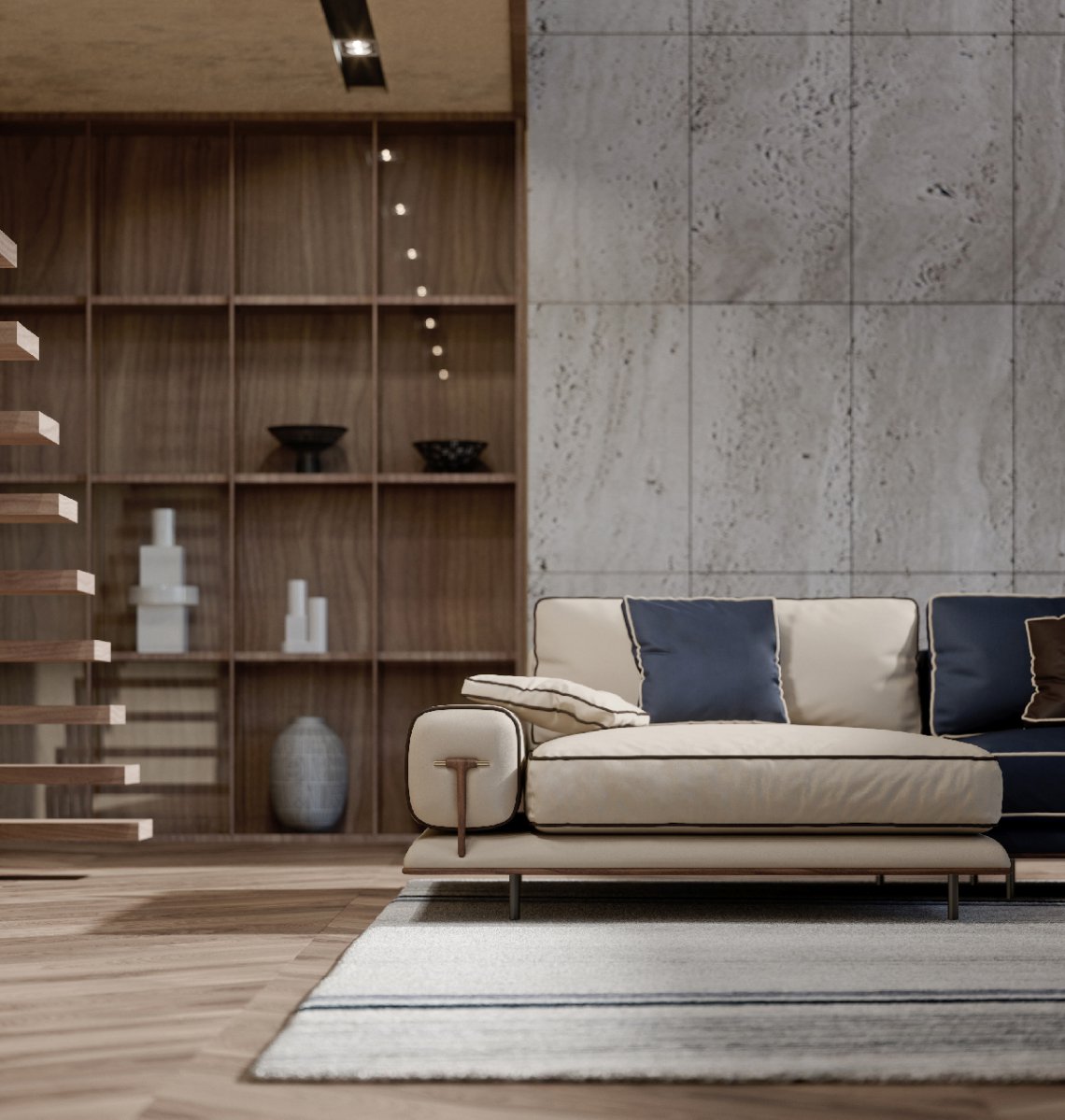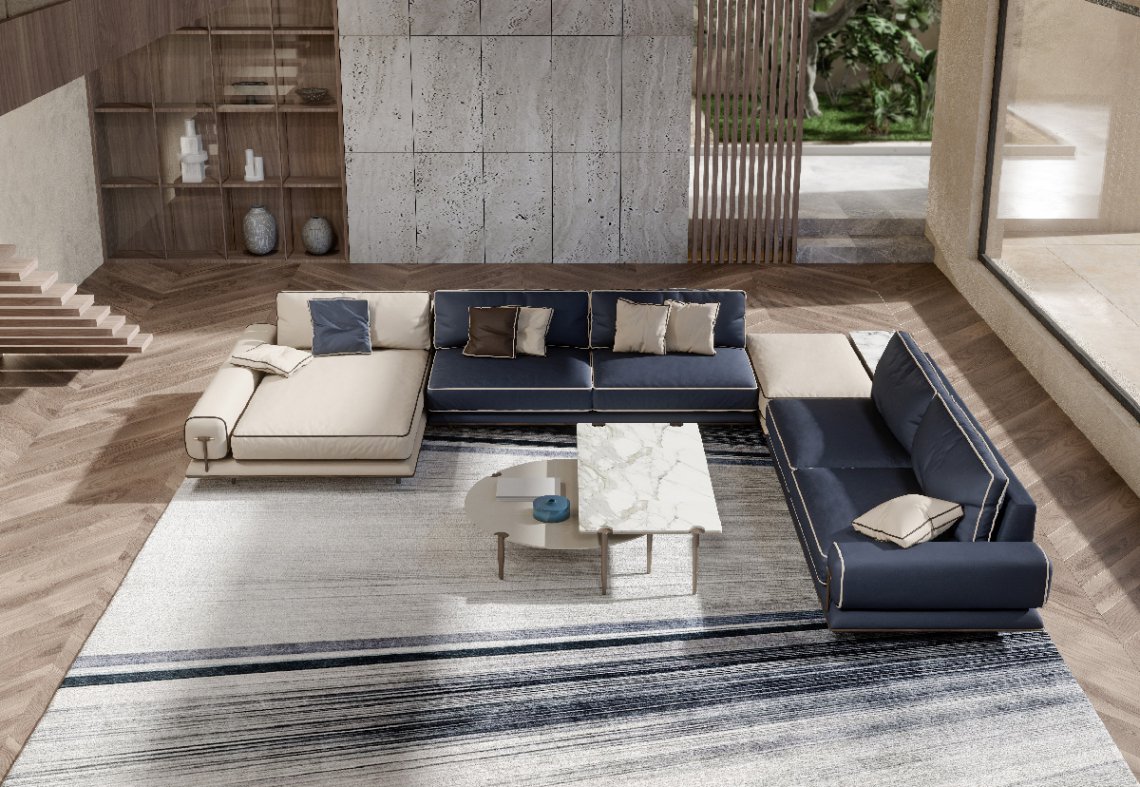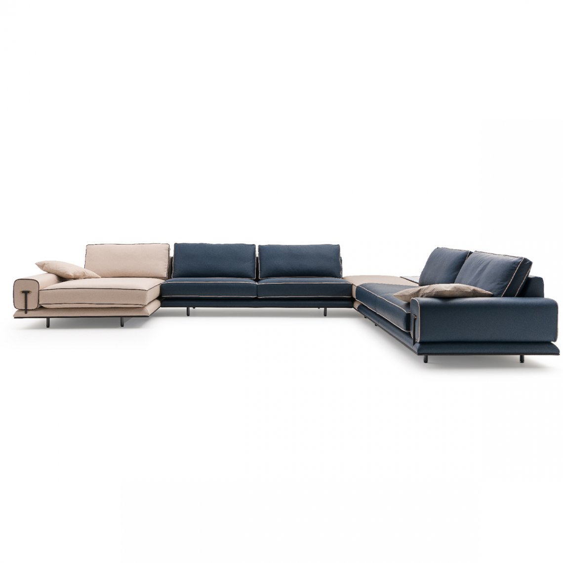 Blues modular sofa, thanks to an ample choice of modules, starting from the central ones up to the end pieces and the chaise longue, including the corner units and the poufs, the modular compositions are several and satisfy most requirements. Even as a 2 or 3-seater, the Blues sofa is outstanding for its minimalist design and at the same time for the richness of its details : the walnut wood base, linear and uniform is supported by tubular metal legs. The Blues sofa is available in different finishes as per sample book.