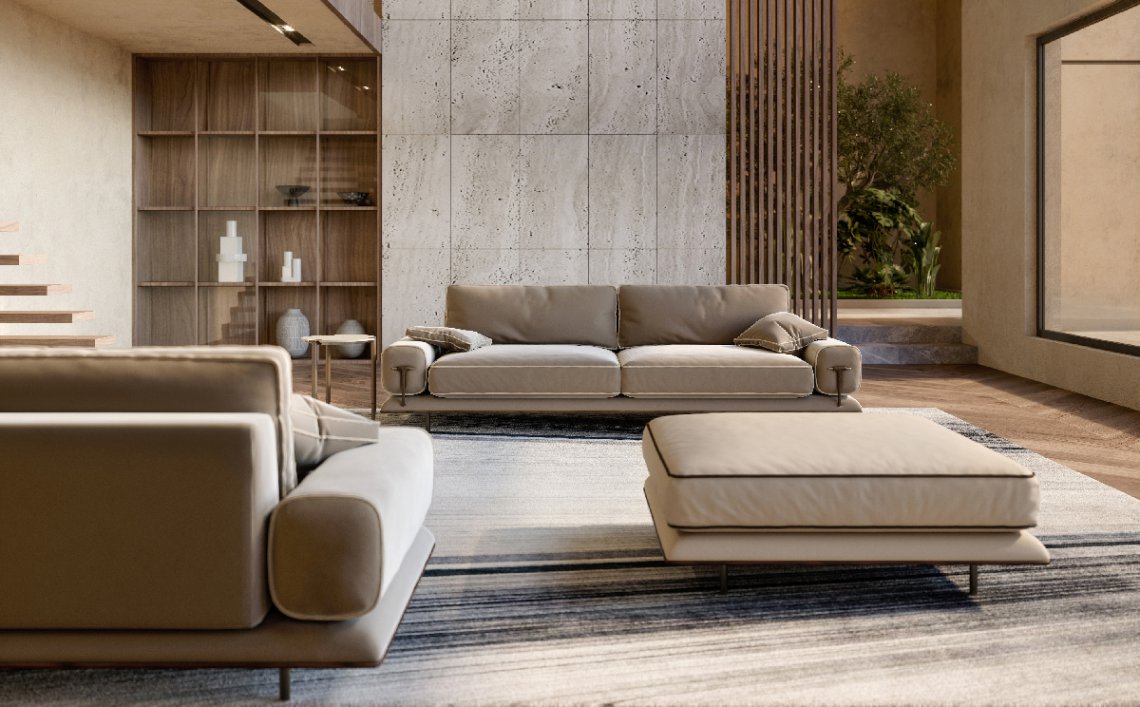 Even as a 2 or 3-seater, the Blues sofa is outstanding for its minimalist design and at the same time for the richness of its details : the walnut wood base, linear and uniform is supported by tubular metal legs. Thanks to an ample choice of modules, starting from the central ones up to the end pieces and the chaise longue, including the corner units and the poufs, the modular compositions are several and satisfy most requirements. The Blues sofa is available in different finishes as per sample book.