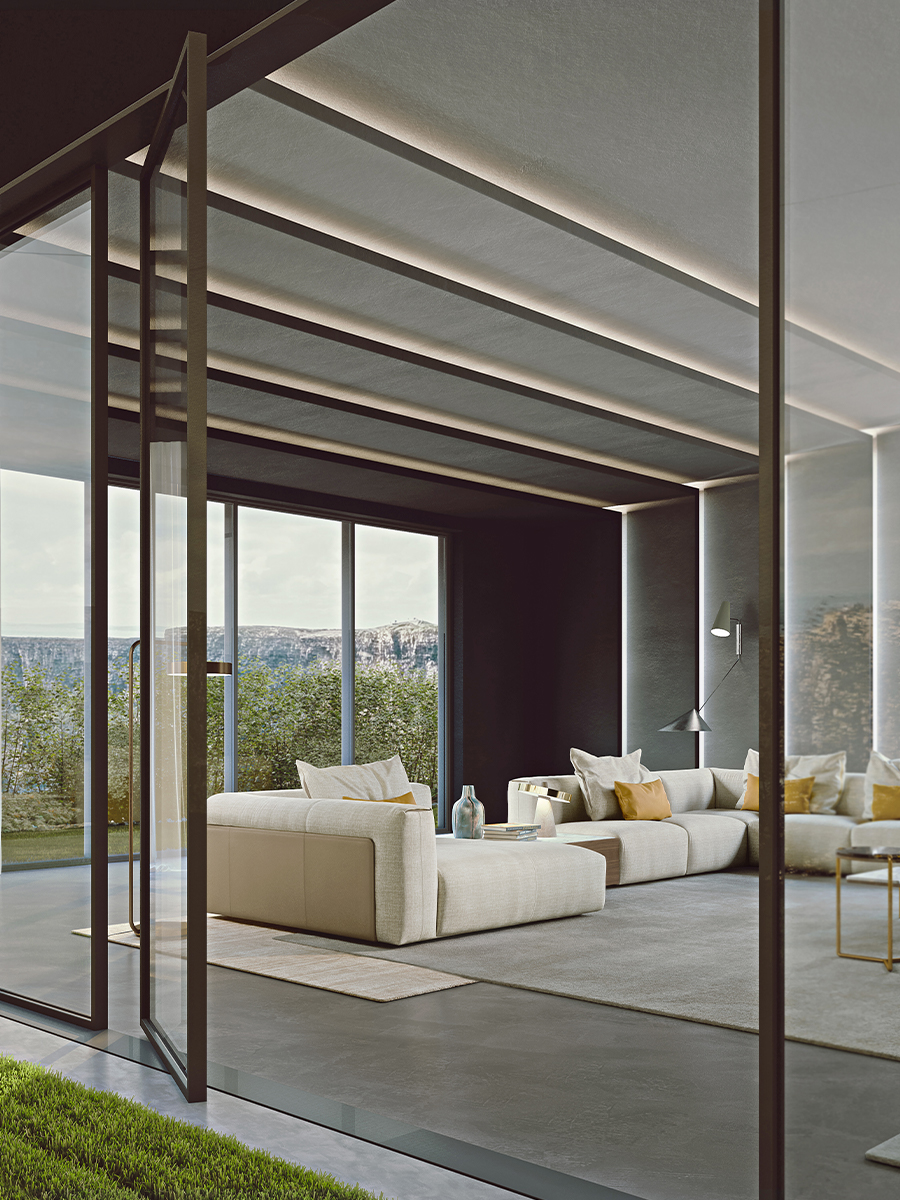 Panels that frame the back part characterize the sofas from Soulcollection. The precious leather inserts enrich the edges of the armrests, they “creep” between the folds of the internal corners of the backrest, as it to highlight its depth. It can be produced in the two or three seater version; it is available in different finishes as per our samples book.