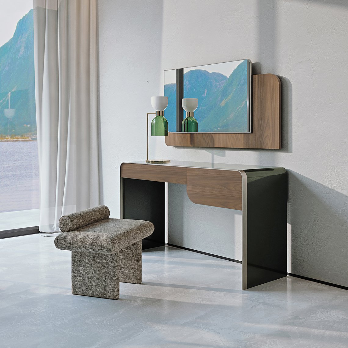 The lacquered wooden top with metal edge of the dressing table from the Soul collection finds its continuation in the linearity of the walnut legs. The presence of the front drawers in wood or marble makes the toilet an essential and functional product for the storage of tricks and objects. The Soul dressing table is available in different finishes as per sample card.