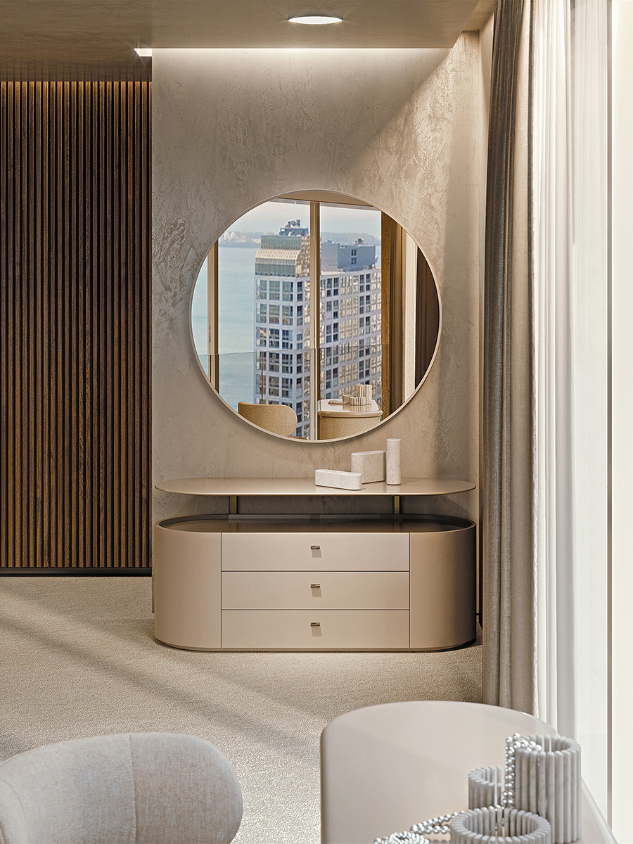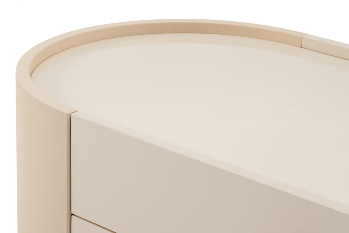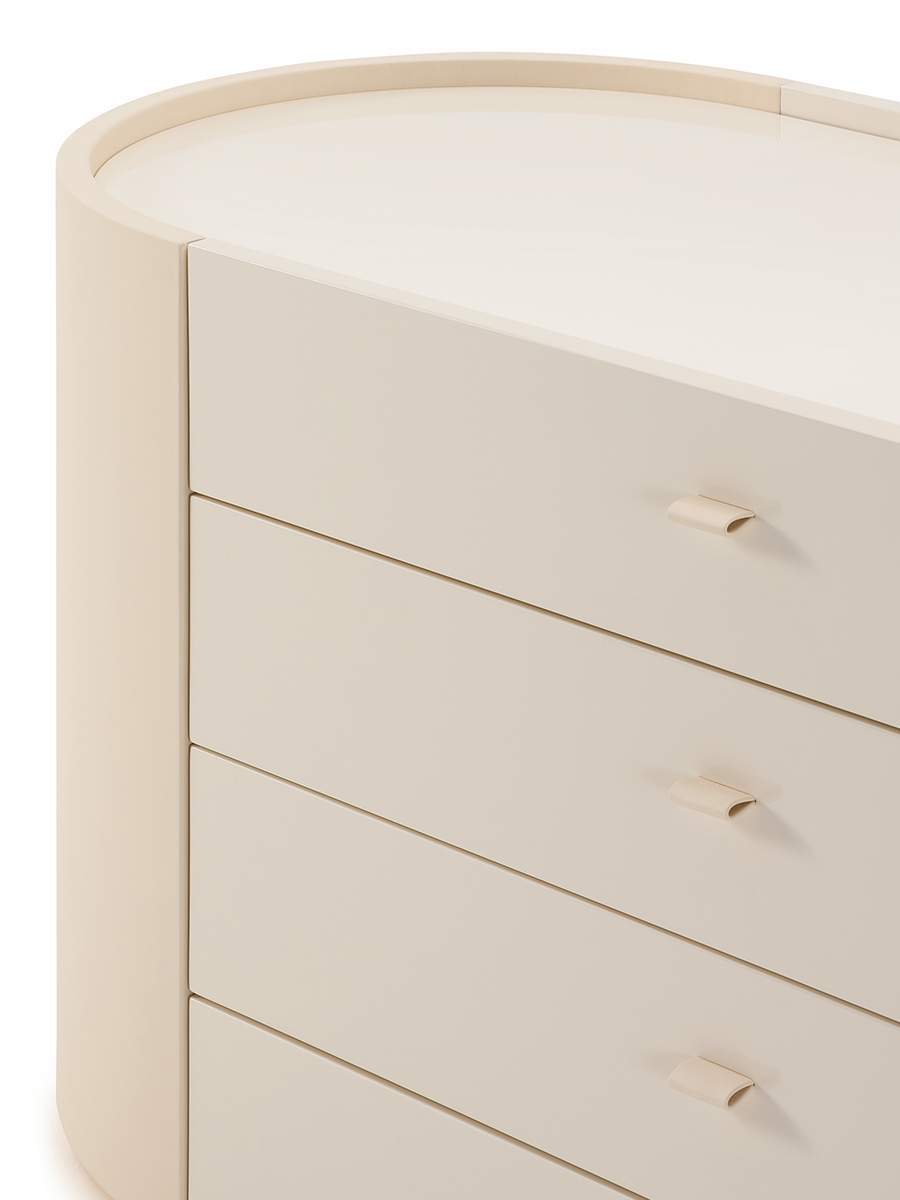 The Roma chest of drawers is an elegant element dedicated to the sleeping area. The sides are covered in leather, the handles are created with elegant straps also in leather. The Roma chest of drawers is available in the version with four drawers or with shelf. The Roma Roma chest of drawers is available in different finishes as per sample card.